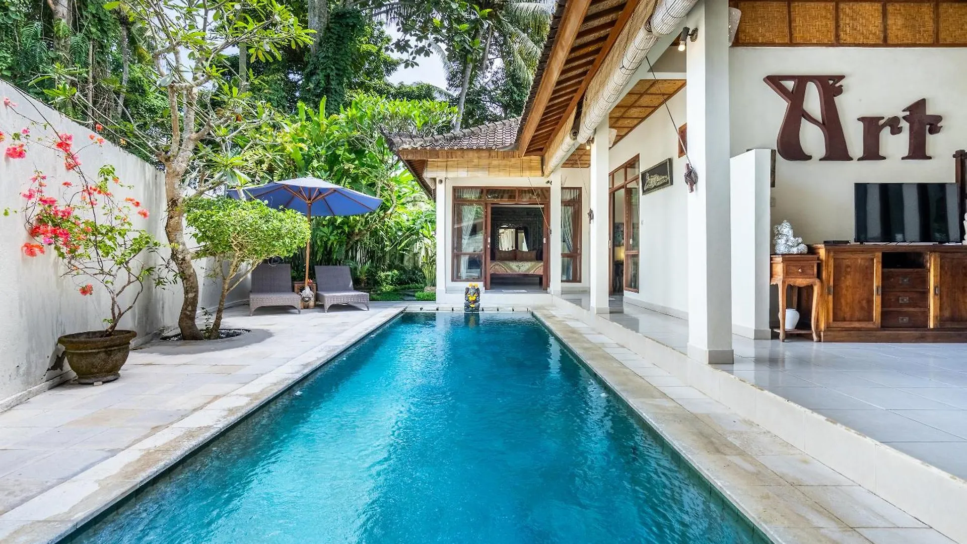 Die Unterkunft bietet eine Essecke mit Ausstattung zur Kaffee- & Teezubereitung. Sie können auch eine Mikrowelle, eine Kaffee-/Teemaschine und einen Kühlschrank nutzen, um Ihre eigene Mahlzeit zuzubereiten. Das Restaurant Warung Pakir verwöhnt Gäste mit asiatischen Gerichten und liegt circa 5 Minuten zu Fuß von hier entfernt. Von dieser Villa sind es 36 Minuten mit dem Auto zum Flughafen Ngurah Rai. Zur Abwechslung bietet die Villa einen Swimmingpool sowie Wandern.